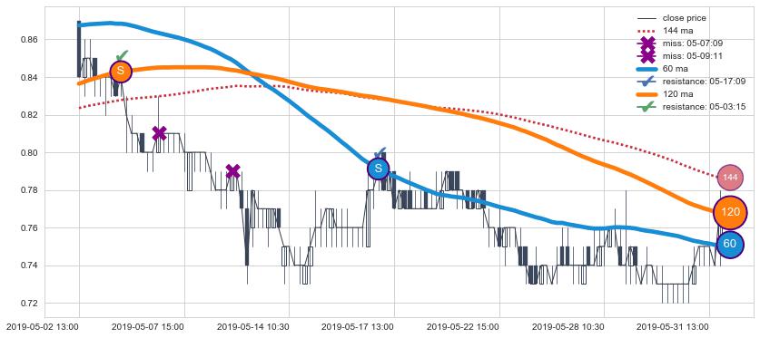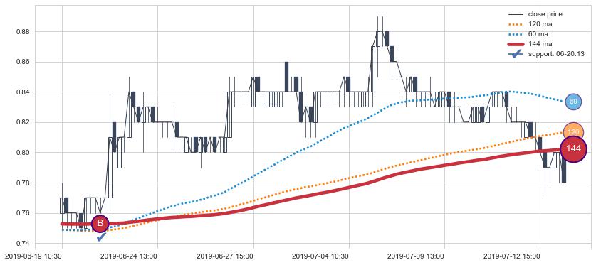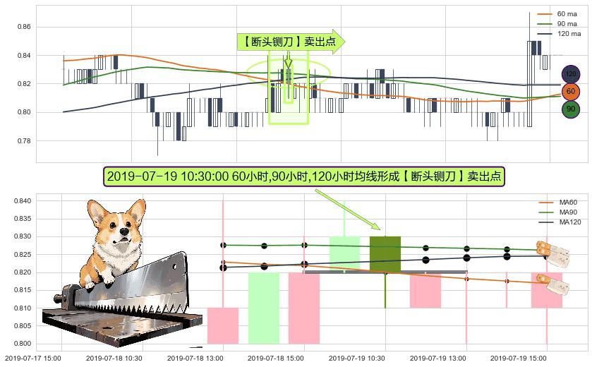 ⚀ 2019-07-19 10:30:00小时显现 60小时-90小时-120小时均线 【断头铡刀】卖出点 看空信号,后市看跌,卖出
