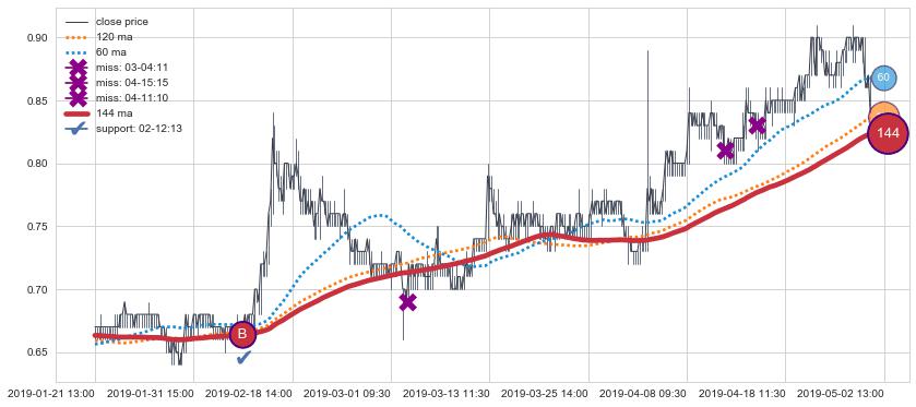 ⚄ 均线向下破位后价格围绕均线附近波动,并未远离均线,再次向上突破后维持原均线上涨趋势【极强】