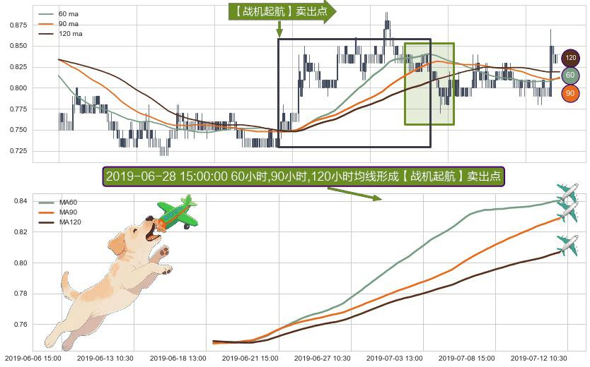 ⚀ 2019-06-18 15:00:00小时-2019-07-11 15:00:00小时显现 60小时-90小时-120小时均线 【战机起航】卖出点 看空信号,后市看跌,卖出