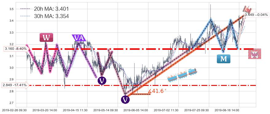 ♘ 支撑价格位3.160,可信任强度95.93%,距离最后交易2019-08-21 15:00形成的收盘价格3.450相差 -8.40%