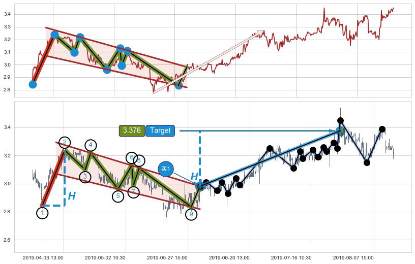 ➣ 最小中继整理涨幅→𝐇: 0.39500 (𝐇旗杆的长度:旗杆起点→顶点)