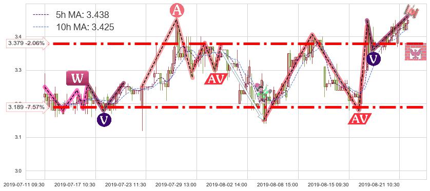 ♘ 支撑价格位3.379,可信任强度87.02%,距离最后交易2019-08-21 15:00形成的收盘价格3.450相差 -2.06%