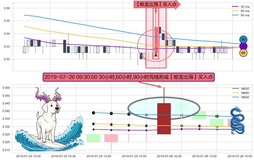 形态多维评估: ⚀ 2019-07-26 09:30:00小时显现 30小时-60小时-90小时均线 【蛟龙出海】买入点 看多信号,后市看涨,买入