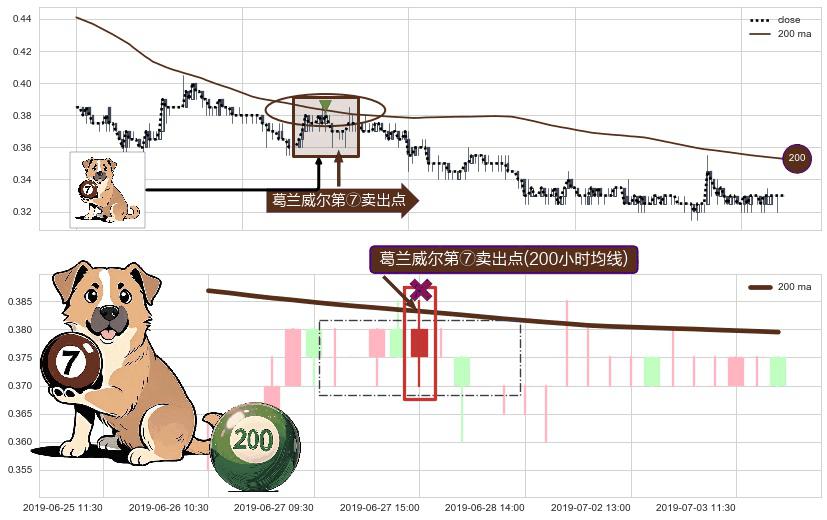 形态多维评估: ⚀ 2019-06-27 15:00:00-小时显现 葛兰威尔均线 200小时均线 第⑦卖出点 下降趋势的中继信号,后市看跌,卖出信号