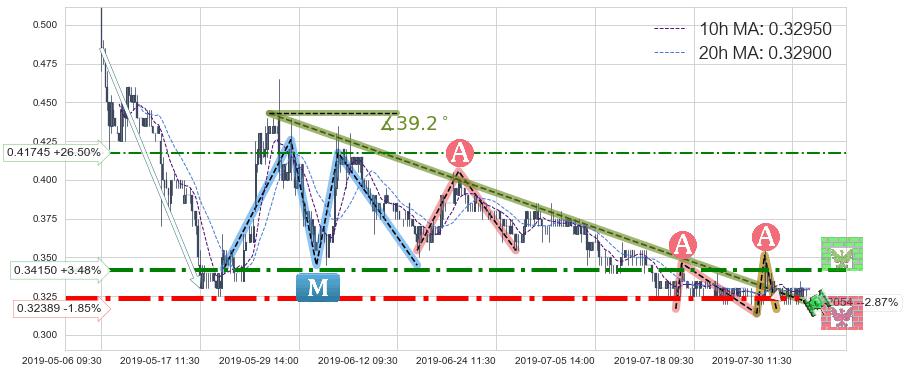 ♘ 支撑价格位0.32389,可信任强度95.64%,距离最后交易2019-07-31 15:00形成的收盘价格0.33000相差 -1.85%