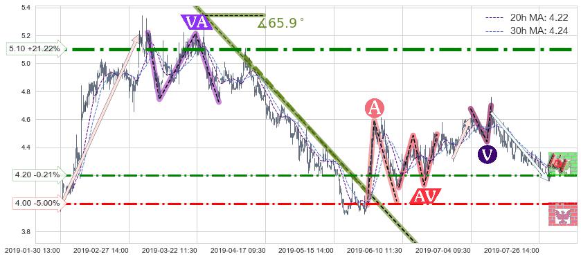 ♘ 阻力价格位4.20,可信任强度55.65%,距离最后交易2019-07-31 15:00形成的收盘价格4.21相差 -0.21%