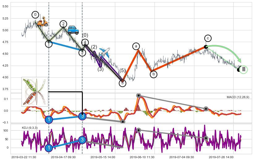 从2019-03-04 10:30至2019-03-29 14:00,共包含118个小时,阶段股价下跌-8.58%,阶段股价变动位移路程比: 1 : 8