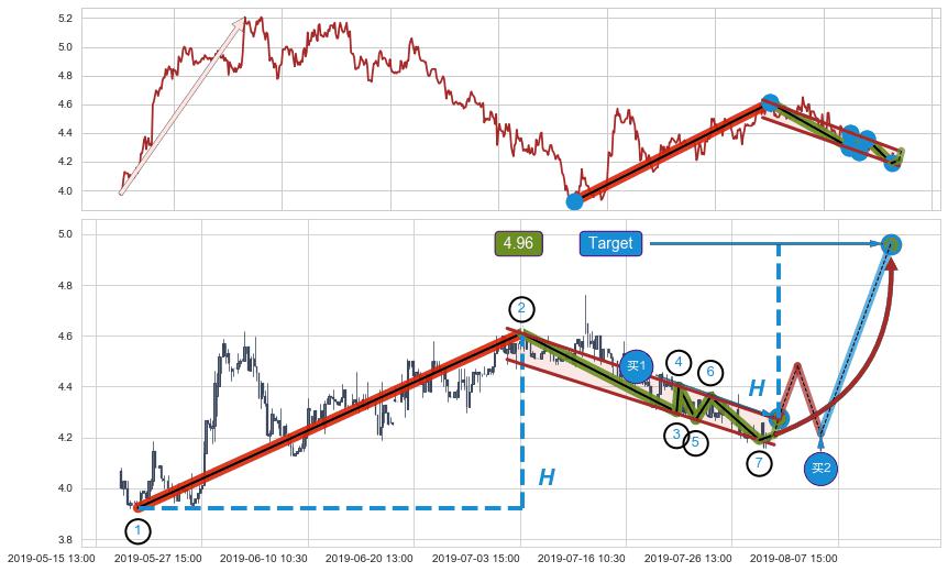 ➣ 最小中继整理涨幅→𝐇: 0.6870 (𝐇旗杆的长度:旗杆起点→顶点)
