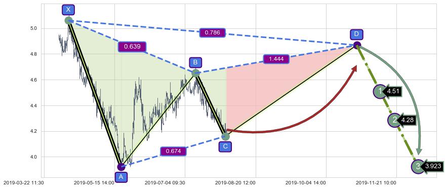 ➢ 距离预测D点位置有足够的上涨空间, 与看跌【伽利】形态相反,实际方向【看涨】