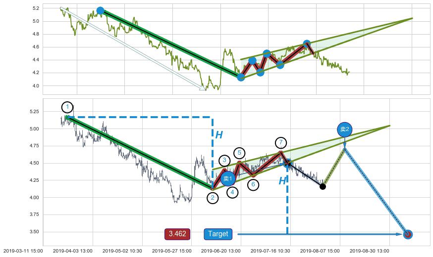 ♘ 阻力价格位5.10,可信任强度93.64%,距离最后交易2019-07-31 15:00形成的收盘价格4.21相差 +21.22%