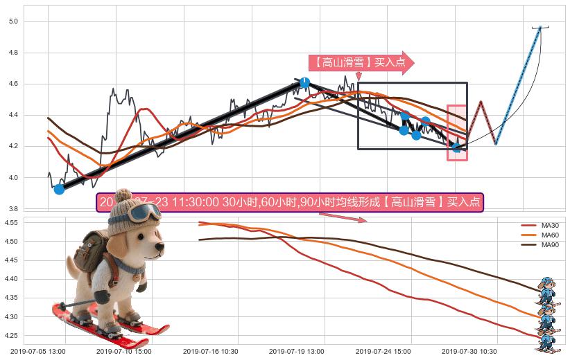 从2019-07-11 09:30至2019-07-31 15:00,共包含90个小时,阶段股价下跌-9.52%,阶段股价变动位移路程比: 1 : 6