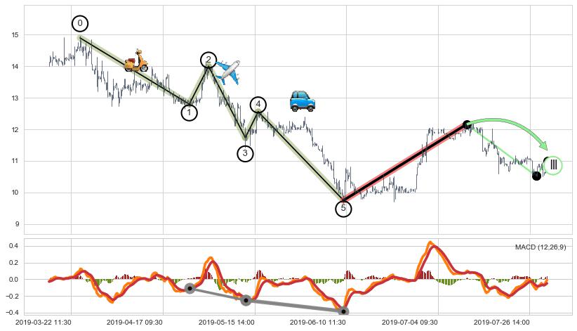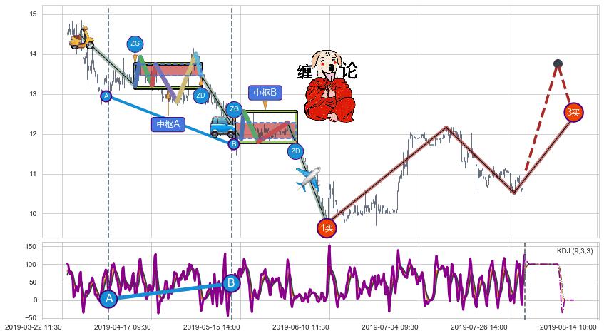 从2019-07-22 14:00至2019-07-31 15:00,共包含44个小时,阶段股价上涨3.23%,阶段股价变动位移路程比: 1 : 8