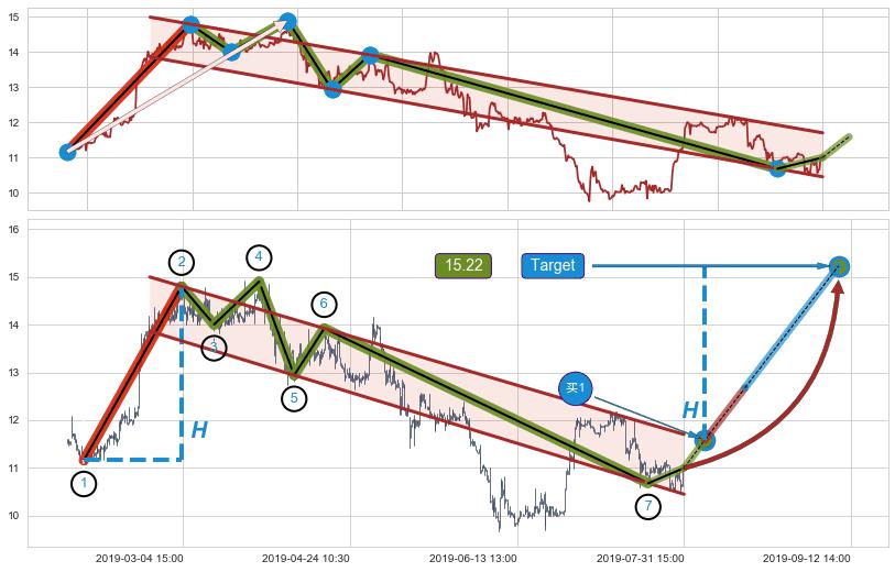 ➣ 最小中继整理涨幅→𝐇: 3.640 (𝐇旗杆的长度:旗杆起点→顶点)