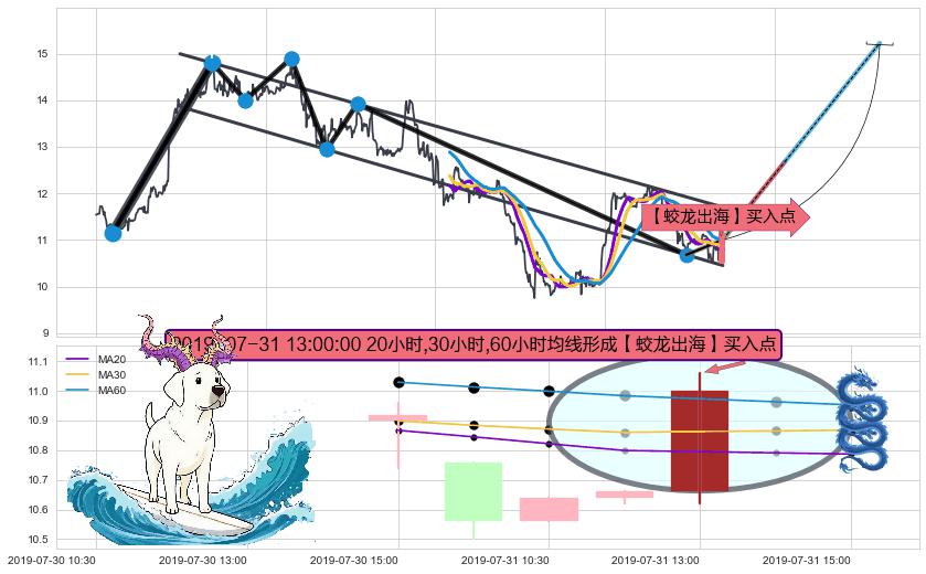 | 15 🅚:【蛟龙出海】买入点 ➕ 📈:趋势线下跌趋势原阻力已出现突破,猜想原阻力已变为支撑位(大周期均值回复) ☞ 看多信号 ⇥ 【均线】交织【图形】⇥ 综合量化分数: 52 | > |