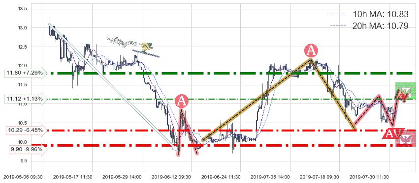 ♘ 阻力价格位11.12,可信任强度48.61%,距离最后交易2019-07-31 15:00形成的收盘价格11.00相差 +1.13%