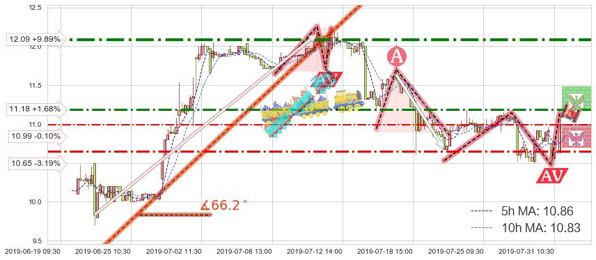 ♘ 支撑价格位10.99,可信任强度44.32%,距离最后交易2019-07-31 15:00形成的收盘价格11.00相差 -0.10%