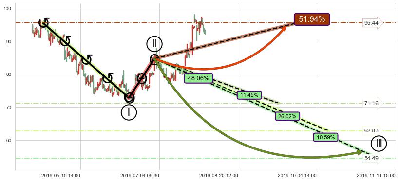 ➢ 循环浪继续向下【最低】位置(11-11:15, 54.49),匹配聚类样本比例22.04%, 可能性概率10.59%