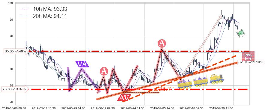 ♘ 支撑价格位85.35,可信任强度70.36%,距离最后交易2019-07-31 15:00形成的收盘价格92.25相差 -7.48%