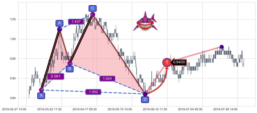 ➣ 已完成【鲨鱼】形态起点X: 03-08:14, 终点D: 05-23:15, 共296交易小时