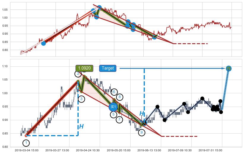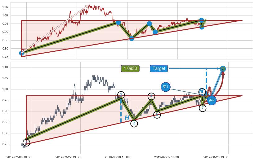 ➢ 最小中继整理涨幅→𝐇: 0.203000 (𝐇楔型旗杆的长度:楔型起点→顶点)