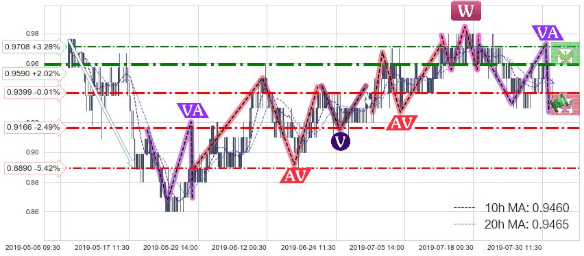 ♘ 阻力价格位0.9708,可信任强度53.76%,距离最后交易2019-07-31 15:00形成的收盘价格0.9400相差 +3.28%