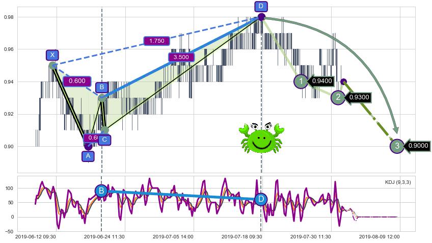 ➣ D点拟合预测价格0.9080,距离最后交易收盘价格0.9400相差 -3.41%