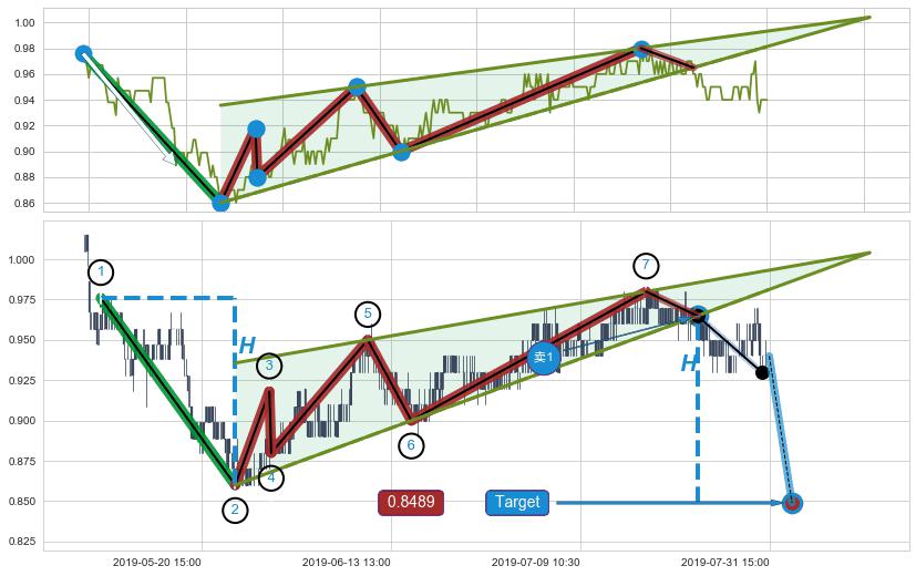 ➢ 最小中继整理跌幅→𝐇: 0.116000 (𝐇楔型旗杆的长度:楔型起点→顶点)