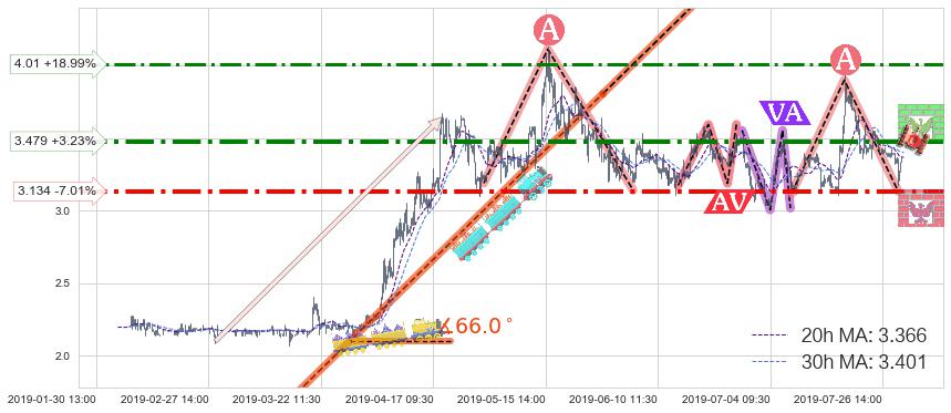 ♘ 阻力价格位3.479,可信任强度78.29%,距离最后交易2019-07-31 15:00形成的收盘价格3.370相差 +3.23%