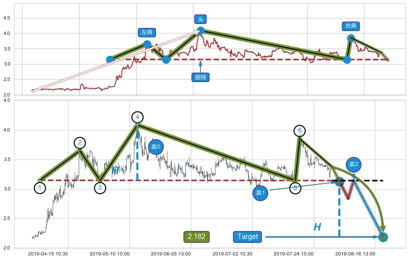 ➣ 最小反转跌幅→𝐇: 0.9396 (头部与颈线垂直距离)