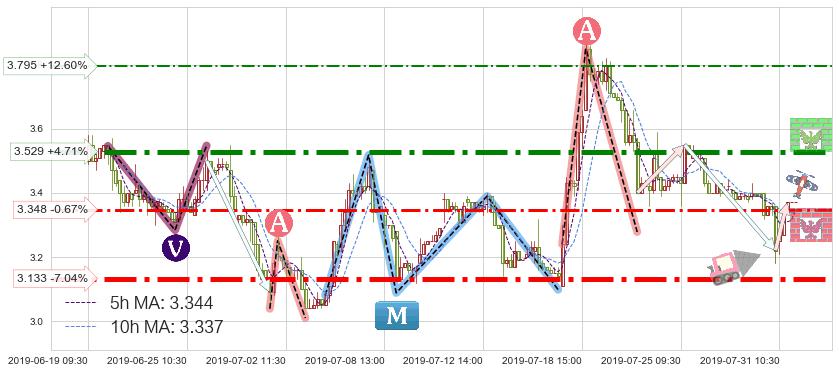 ♘ 阻力价格位3.529,可信任强度88.85%,距离最后交易2019-07-31 15:00形成的收盘价格3.370相差 +4.71%
