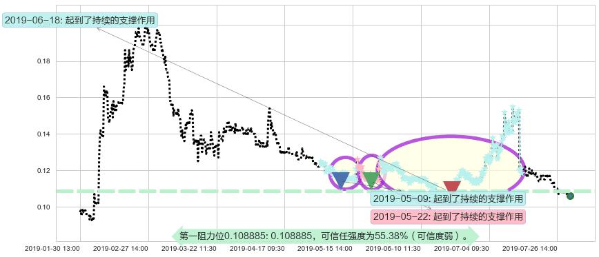 ♘ 阻力价格位0.108885,可信任强度55.38%,距离最后交易2019-07-31 15:00形成的收盘价格0.106000相差 +2.72%
