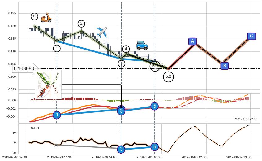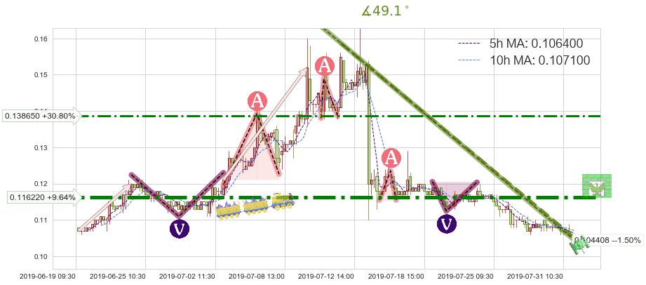 ➣ 5.1: 预测当前第5浪位置(07-31:13, 0.106000),仍然有下跌空间