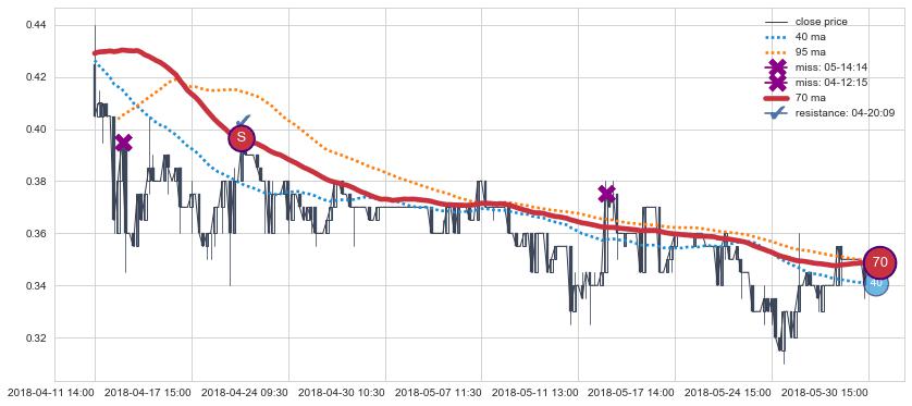 下跌趋势04-11 14:00-05-30 15:00,均线70确认关键阻力1处