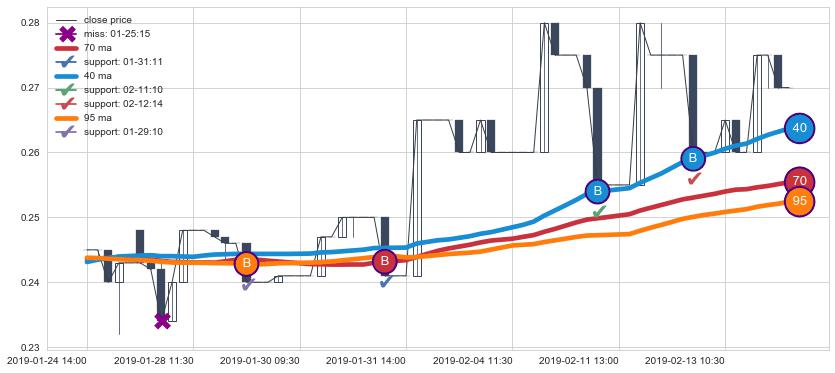 上涨趋势01-24 14:00-02-14 10:30,均线40, 70, 95确认关键支撑4处