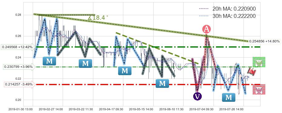 ♞ 20小时均线:0.220900,30小时均线:0.222200→ 快线<慢线