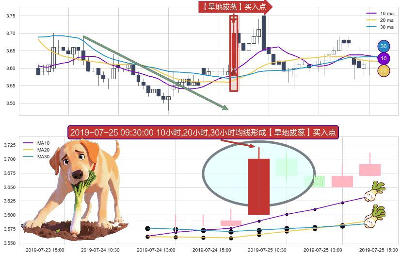 ⚀ 2019-07-25 09:30:00小时显现 10小时-20小时-30小时均线 【旱地拔葱】买入点 看多信号,后市看涨,买入