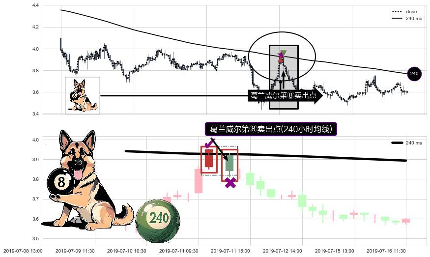 ⚀ 2019-07-11 13:00:00-小时显现 葛兰威尔均线 240小时均线 第⑧卖出点 下降趋势的中继信号,后市看跌,卖出信号