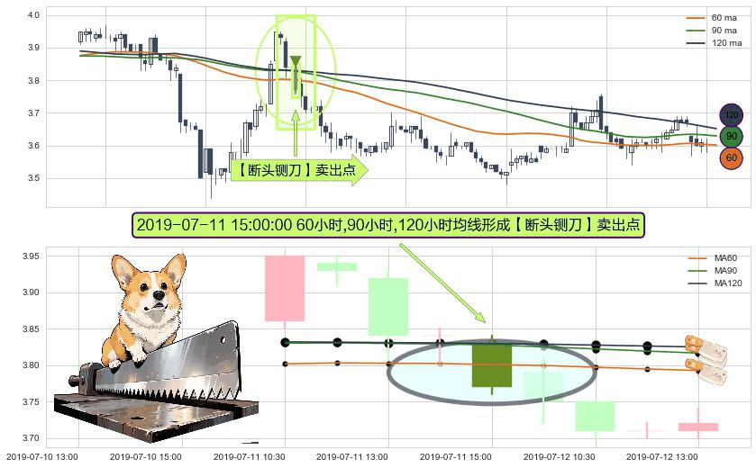 ⚀ 2019-07-11 15:00:00小时显现 60小时-90小时-120小时均线 【断头铡刀】卖出点 看空信号,后市看跌,卖出