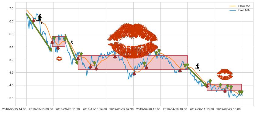 09-24 15:00至04-18 14:00 慢线与快线多次接触,存在上下穿越,有缠绕