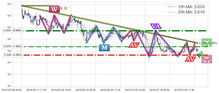 ♘ 阻力价格位3.945,可信任强度95.16%,距离最后交易2019-07-31 15:00形成的收盘价格3.600相差 +9.58%
