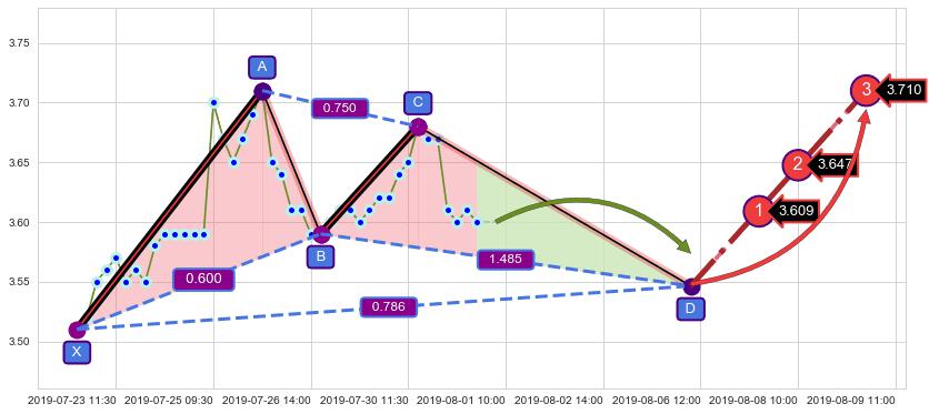 ➣ 未完成【伽利】形态起点X: 07-22:14, 已到达C点: 07-30:13, 预测最终D点: 08-06:11, 共62交易小时
