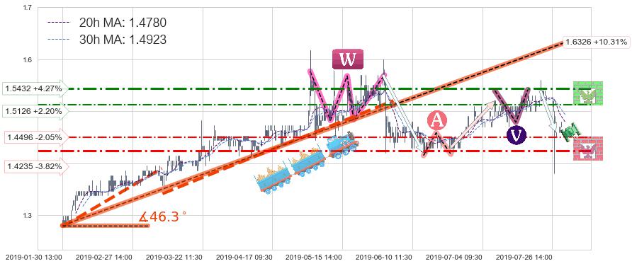 ♘ 阻力价格位1.5432,可信任强度58.76%,距离最后交易2019-07-31 15:00形成的收盘价格1.4800相差 +4.27%