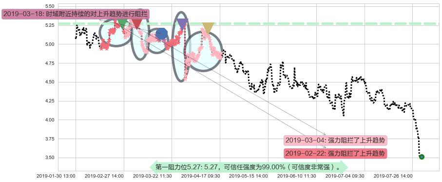 ♘ 阻力价格位5.27,可信任强度99.00%,距离最后交易2019-07-31 15:00形成的收盘价格3.510相差 +50.24%