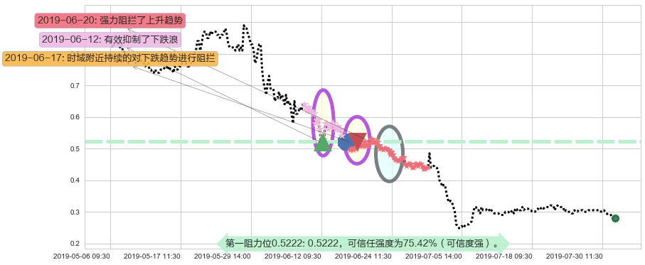 ♘ 阻力价格位0.5222,可信任强度75.42%,距离最后交易2019-07-31 15:00形成的收盘价格0.28000相差 +86.49%