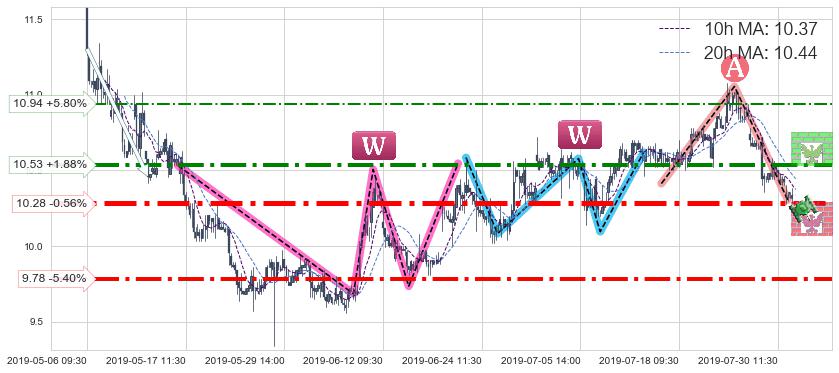 ♞ 10小时均线:10.37,20小时均线:10.44→ 快线<慢线