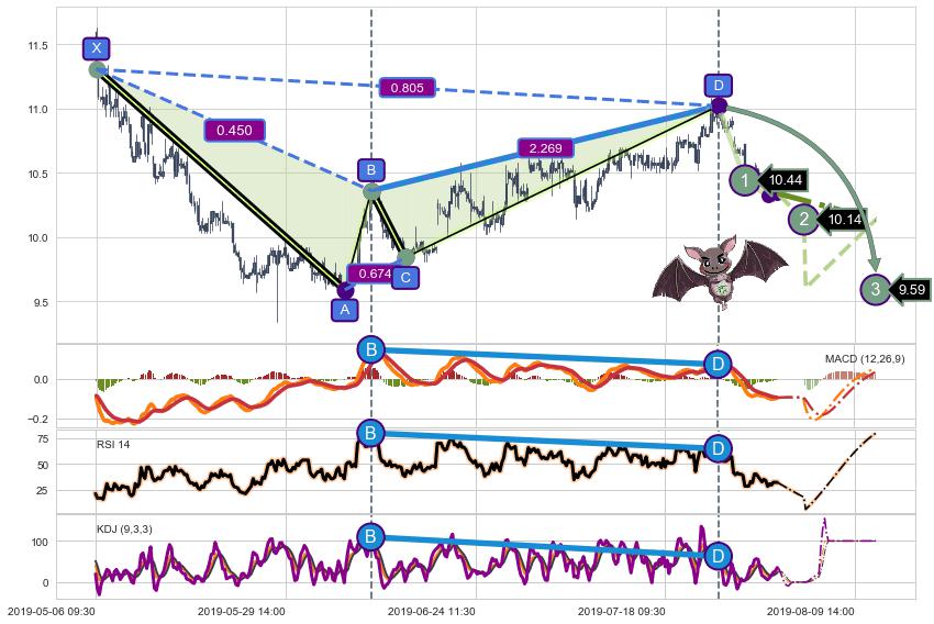 ➣ 已完成【蝙蝠】形态起点X: 05-06:09, 终点D: 07-24:14, 共329交易小时