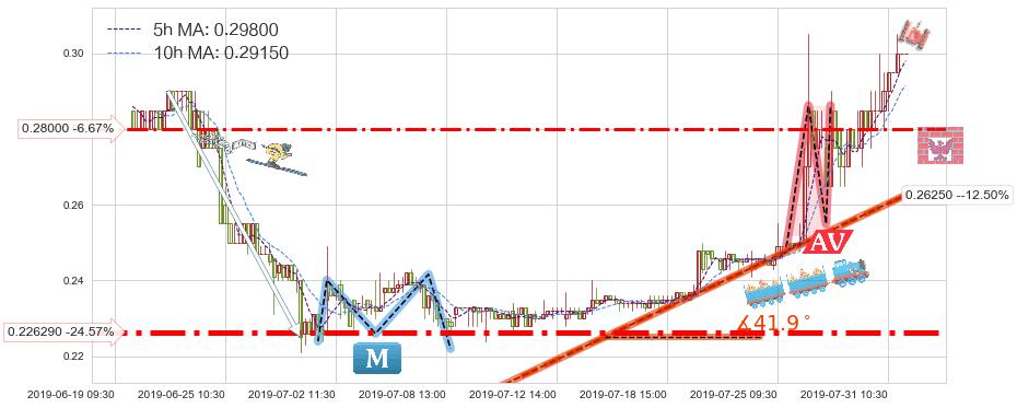 ➢ 预测:2019-08-05 15:00,【小幅回撤】稳定目前上涨趋势的前提下,预测价格:0.27240