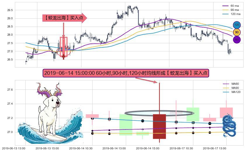 形态多维评估: ⚀ 2019-06-14 15:00:00小时显现 60小时-90小时-120小时均线 【蛟龙出海】买入点 看多信号,后市看涨,买入