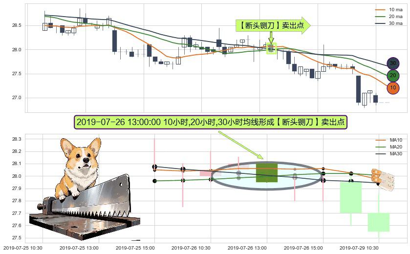 形态多维评估: ⚀ 2019-07-26 13:00:00小时显现 10小时-20小时-30小时均线 【断头铡刀】卖出点 看空信号,后市看跌,卖出