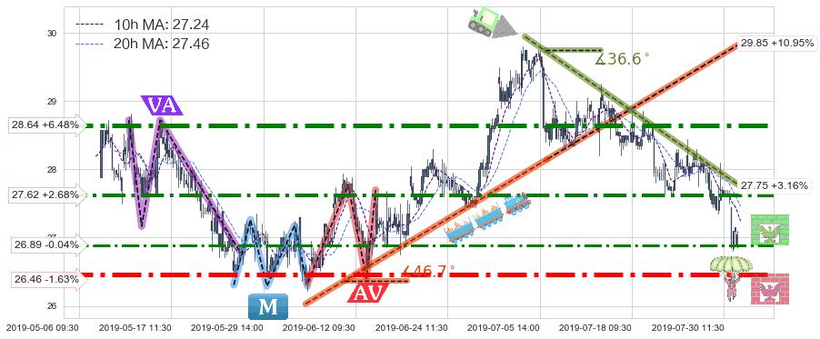 ➣ 07-29:10到达第❷价格目标位置27.55